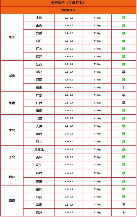 【问猪病加我】2026.3.2-全国猪价:(好猪价.养好猪!)
