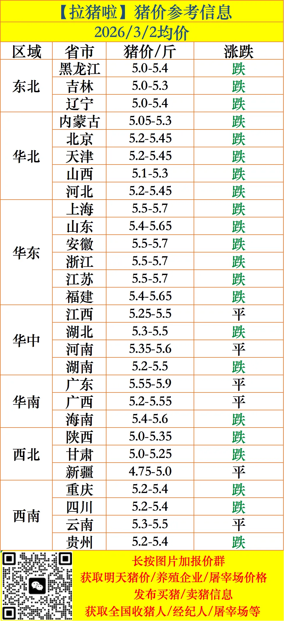 【拉猪啦】3.2-猪价行情与买卖猪信息!(稳中伴跌!偏弱调整!)
