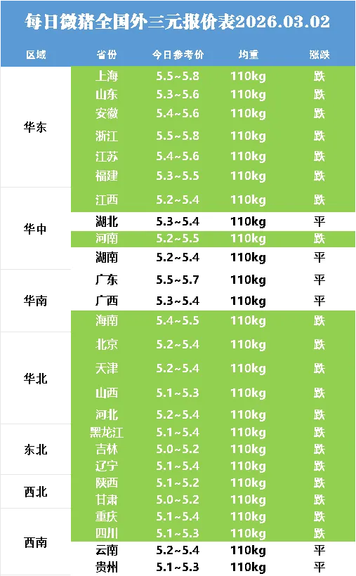 明日最新猪价2026.03.02点击蓝字关注 猪价不错过
