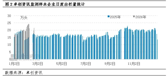 需求端的疲软则成为价格下行的重要推手。春节前备货需求不及预期,据卓创资讯统计样本屠宰企业生猪屠宰量累计增幅仅为27.70%,增幅明显低于往年同期水平。节后消费进入传统淡季,家庭冻品库存高企,居民以消耗库存为主,餐饮、团膳需求尚未完全恢复,学校未开学等因素进一步拖累集体消费,导致终端承接力严重不足。据卓创资讯统计,2月复工首个工作日,样本屠宰企业屠宰量仅为12.66万头,较节前最后一个工作日减少50.98%。节前备货不及市场预期,节后生猪需求进入传统淡季,2月生猪需求端表现不佳,给猪价带来不小的下行压力。