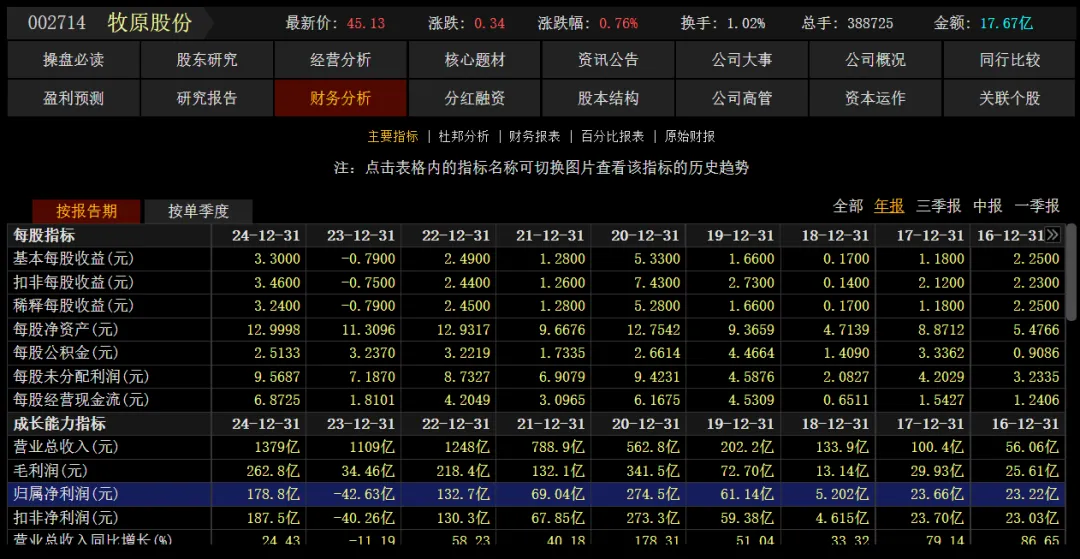 说到养猪,就不得不提猪周期,历史上猪周期平均4年。 上一轮猪周期主要由非洲猪瘟引起。 印象中最近几年猪肉都比较便宜,大概十几块一斤,也没看到猪肉涨价的新闻。 原因是规模化养殖比重越来越大,头部大企业财大气粗,不愿意轻易减产放弃市场份额。 头部企业有成本资金优势,扛得住亏损。 与规模养殖,对应的是散户养殖。 散户的逻辑是追涨杀跌,猪价涨了,多养几只;猪价跌了,少养或者不养了。 追涨杀跌,周期就跑出来了。 现在,头部养殖企业就算是猪价低迷,也不会轻易减产,导致的结果是周期弱化。 这种情况不仅发生在养猪行业,制造业、锂矿、光伏等产能过剩行业都有类似的情况。 中国经济有重生产轻消费的特性。 一方面,税收侧重生产端,所以地方政府有动力在生产端发力,帮助企业融资给资源,给普通人发钱消费总是抠抠搜搜的。 另外,由于政绩考核机制,领导都不愿意企业倒闭发生在自己的任期内。 虽然猪肉价格非常低迷,大量养猪户亏死。 森森认为近期还看不到反转。 先看下几家猪企2025年业绩预告。 牧原股份归母净利润预计147-157亿,同比下降12.2%-17.79%。 温氏股份归母净利润预计50-55亿,同比下降40.73%-46.12%。 新希望归母净利润预计亏损18-15亿,上年同期盈利4.74亿。 正邦归母净利润预计亏损4.7-6亿,上年同期亏损3.3亿,同比下降50.35%-89.44%。 牧原和温氏利润好一些,大量猪企亏损。 牧原2024年利润历史第二高,2025年仅比2024年略低。