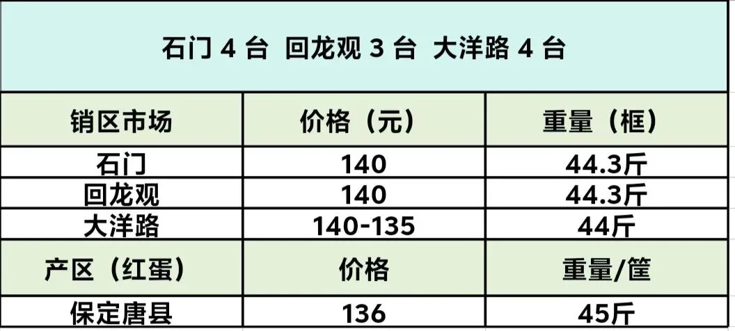 大洋路鸡蛋价格2026年 3 月 2 日报价 养羊网 2026-03-02 大洋路鸡蛋价格2026年 3 月 2 日报价大洋路到 4 台,价格 140-135 元,雨雪天,人少不快,也没剩车,明天回常车多说 2-3 台附近。 养羊网 2026-03-02 上一篇:2026.3.2年鸡蛋价格最新报价行情 下一篇:2026-3-2全国鸡蛋价格早报 您可能还会对下面的文章感兴趣111: 相关文章 2月2日全国猪价 2025年4月13日全国各地生猪价格信息 近期价格更新!!! 钱大妈晚上打折避坑,没好感了