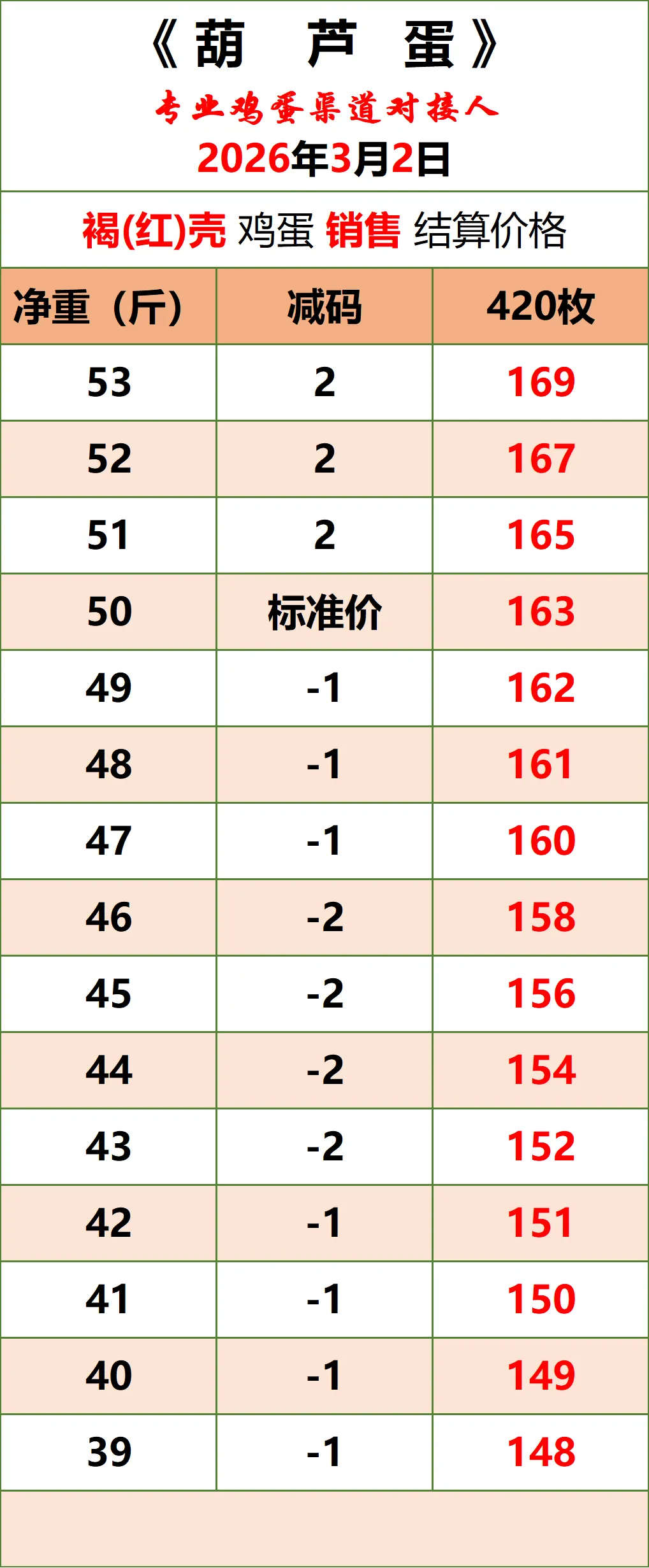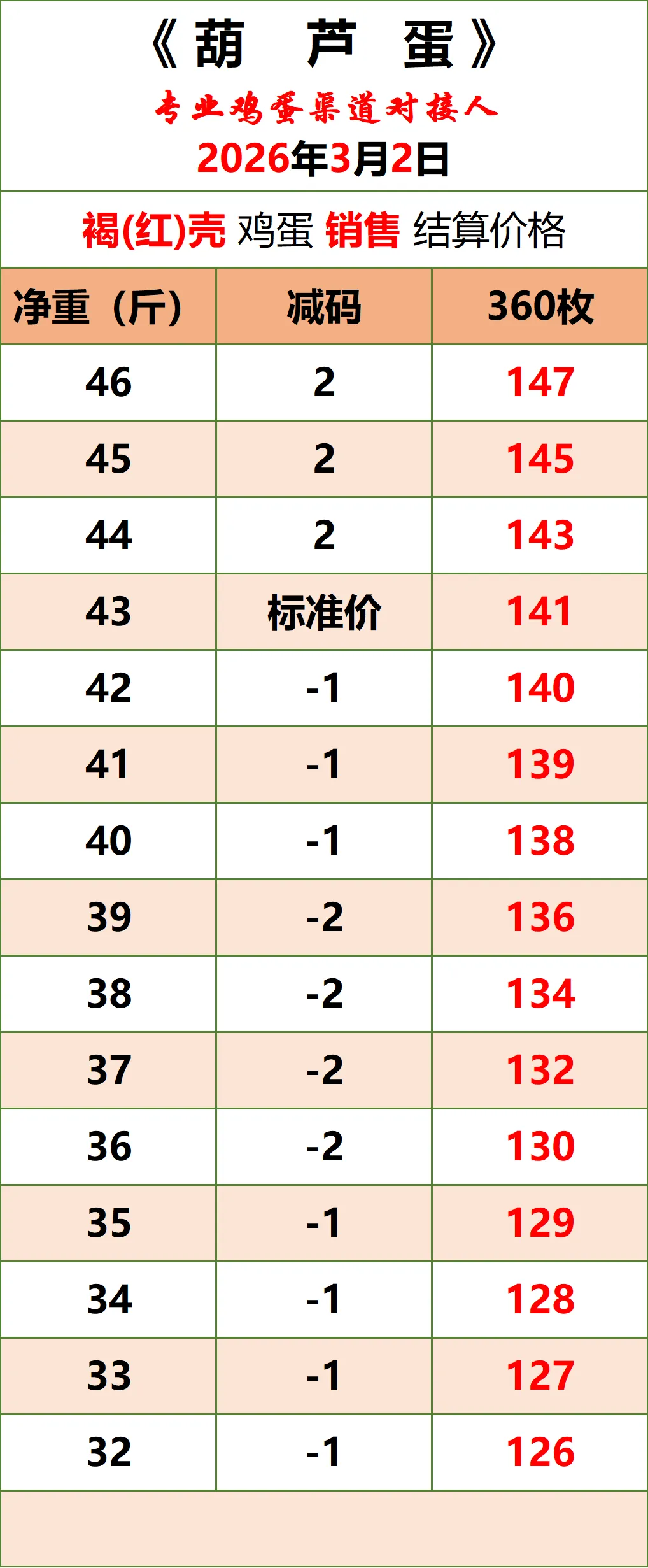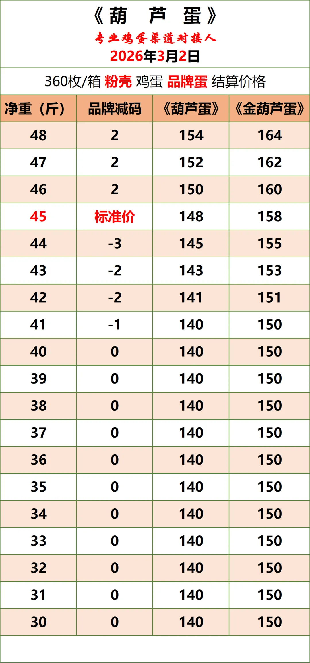 2026年3月2日《葫芦蛋》鸡蛋价格