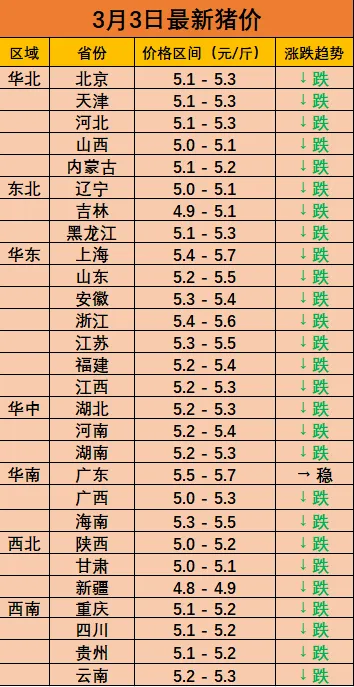 3月3日最新猪价!大面积飘绿?!