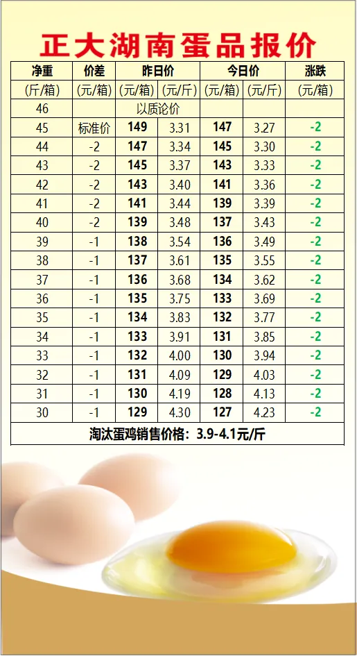 2026年3月3日正大湖南鸡蛋价格行情 养羊网 2026-03-03 2026年3月3日正大湖南鸡蛋价格行情合作请联系我们?了解最新蛋价行情,请关注正大湖南蛋品报价平台。 养羊网 2026-03-03 上一篇:【猪价大预测】2026年2026年3月5日~3月7日!!全国猪价! 下一篇:一夜“跳水”,猪价下跌“六亲不认”!附:3月4日猪价 您可能还会对下面的文章感兴趣111: 相关文章 养西高地幼犬一月好物分享 鸡蛋比前几天价格又低了,3.99元/斤。 我买别人卤好的羊蹄子 羊羔袋合集(●'?'●)