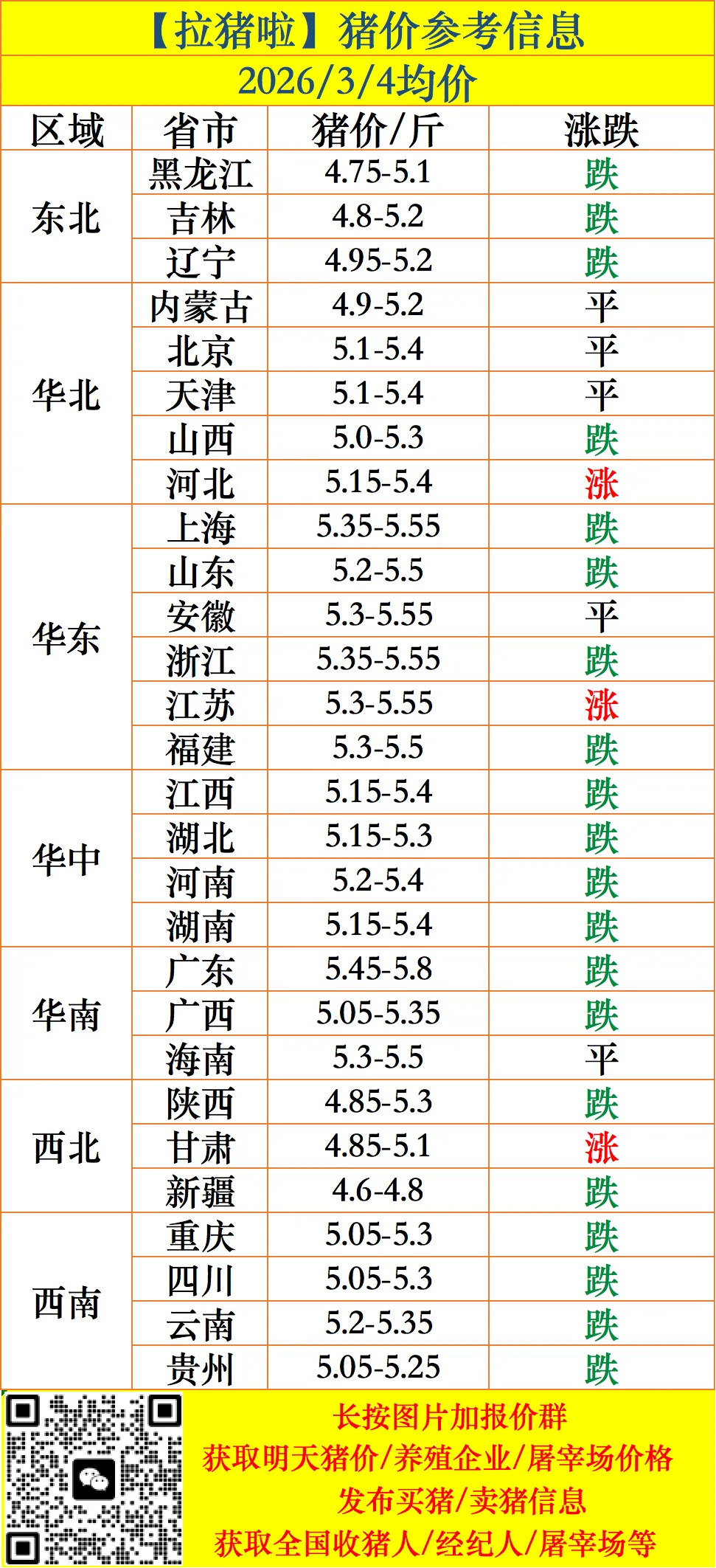 【拉猪啦】3.4-猪价行情与买卖猪信息!(跌幅减缓,局部上涨!)
