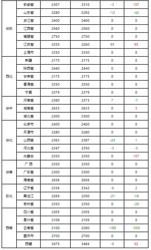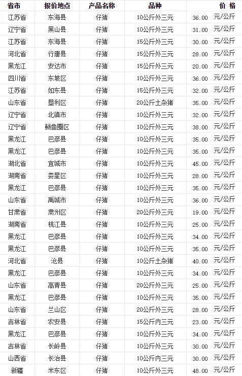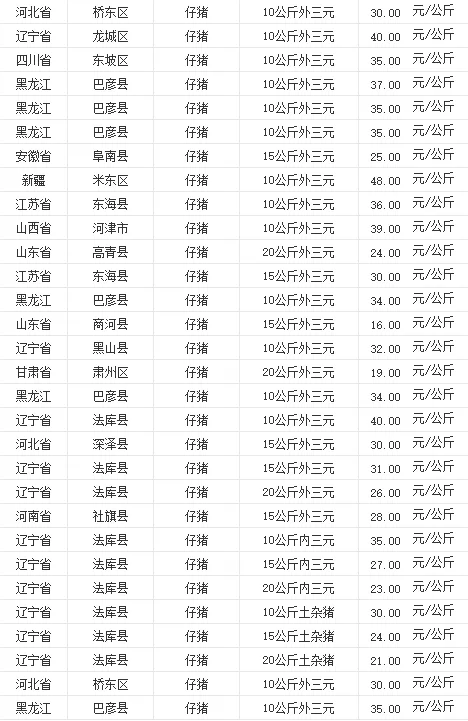 全国各地区今日猪价