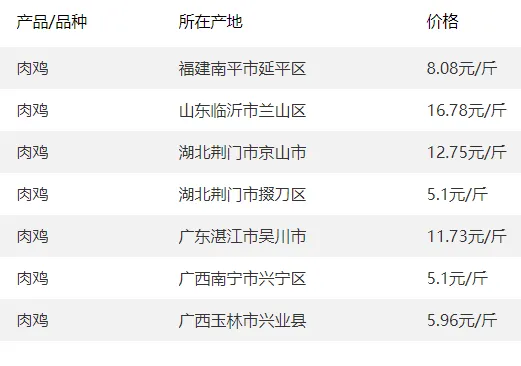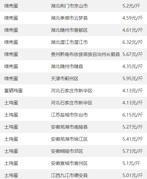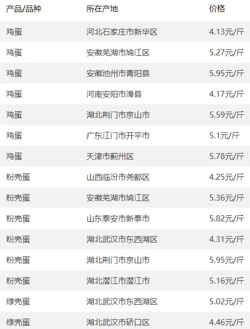 全国部分地区鸡蛋价格