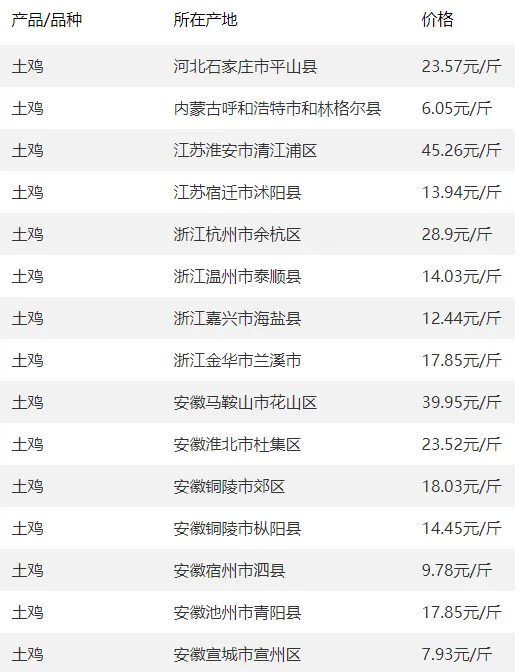 土鸡价格