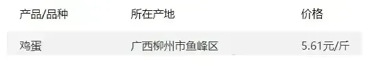 广西部分地区鸡蛋价格
