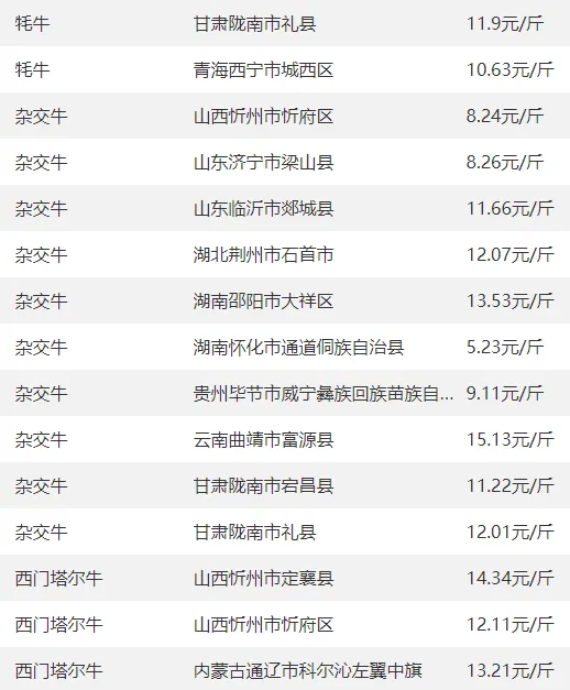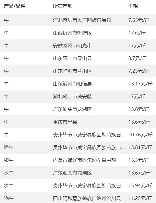 全国部分地区牛价