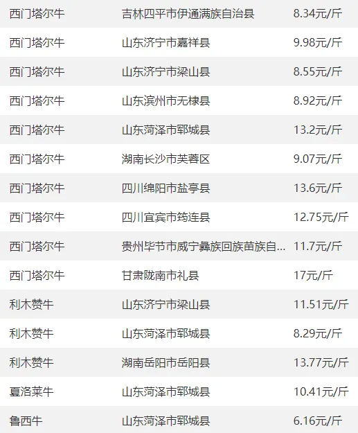 3. 全国育肥牛主流价格13-14.5元/斤,优质西门塔尔14.5-16元/斤,整体稳中有涨。
