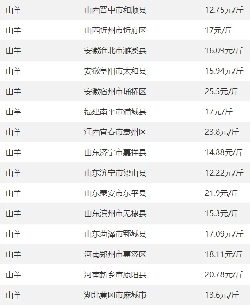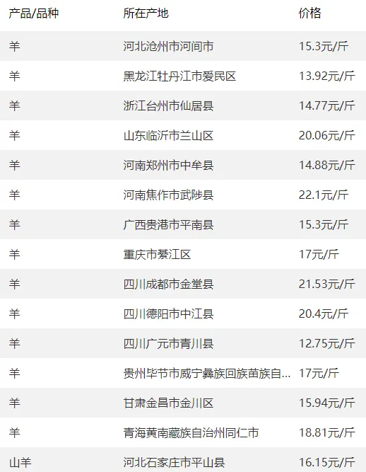 全国部分地区羊价