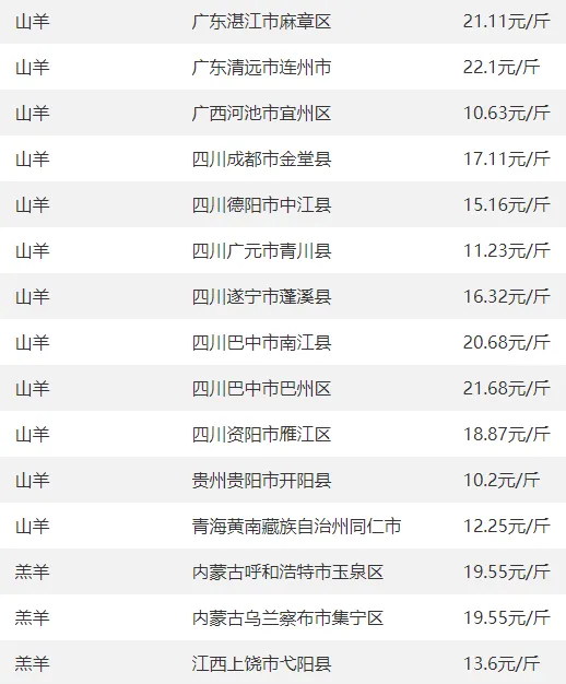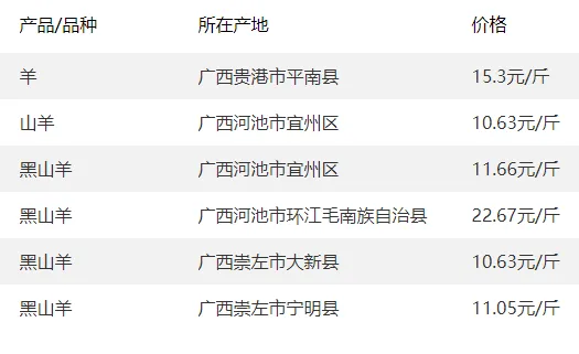 广西部分地区羊价