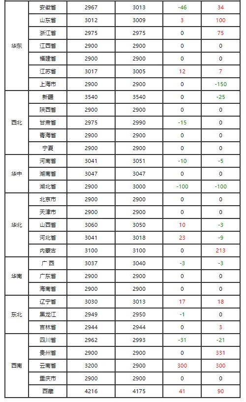 2. 当日内三元生猪价格呈现区域分化,海南以16.01元/公斤居首,新疆、北京10.00元/公斤为最低。
