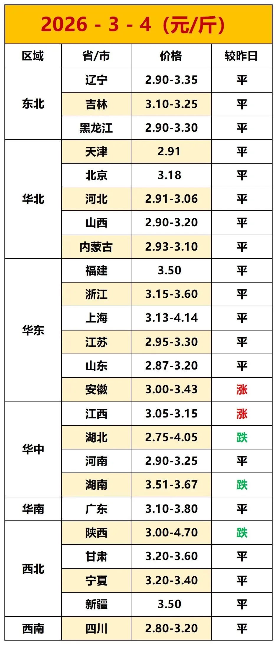 2026年3月4日-全国鸡蛋价格(平稳!)