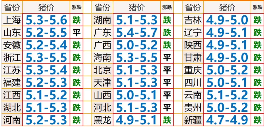 2026.3.4今日猪价格表┃3.4全猪价今日涨跌表 养羊网 2026-03-04 2026.3.4今日猪价格表┃3.4全猪价今日涨跌表 养羊网 2026-03-04 上一篇:山东慧丰源3月4日猪价行情 下一篇:【鸡蛋报价】2026.3.4日全国禽蛋价格分析报告 您可能还会对下面的文章感兴趣111: 相关文章 猪价逆势上扬,“6元时代”或难持久?今日全国各地肉猪、猪苗,牛羊鸡鸭鹅、蛋、禽苗和豆 农村致富项目:大棚养黄鳝长得好效益高 2025年6月26日全国各地生猪价格信息 【鸡蛋报价】2026年2月5日