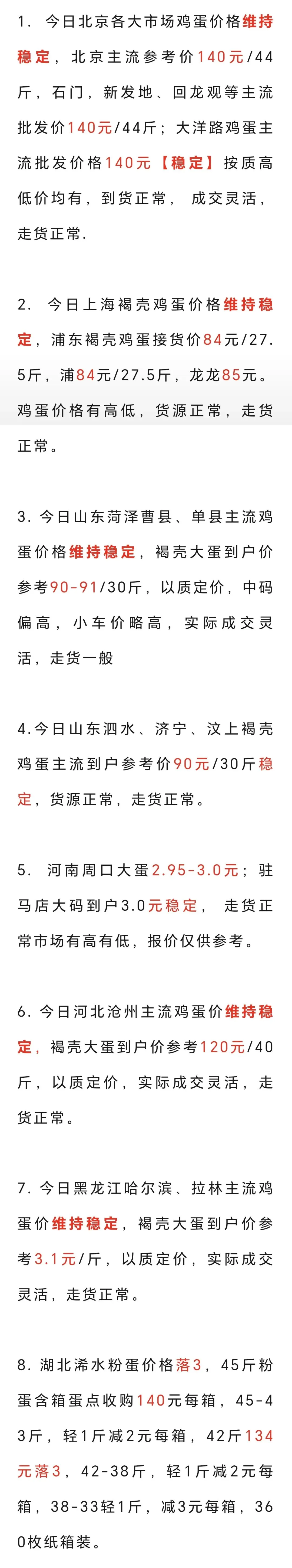 2026年3月4日各地鸡蛋价格 养羊网 2026-03-04 2026年3月4日各地鸡蛋价格 养羊网 2026-03-04 上一篇:跌!跌!跌!2026年3月4日鸡蛋价格最新报价行情参考 下一篇:猪价早知道20260304日调整稳定 您可能还会对下面的文章感兴趣111: 相关文章 这是俺家的土鸡蛋 2025年4月13日全国各地生猪价格信息 云南鸡蛋价格参考:2月24日! 今日鸡蛋价格(2026.1.29)