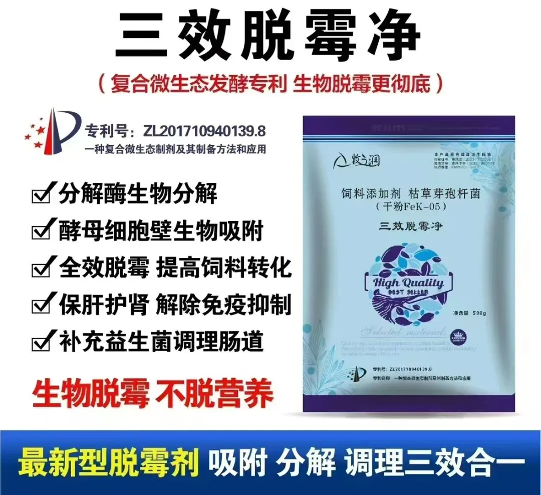 ? ? ?酵母细胞壁生物吸附,生物降解,脱霉不脱营养,不伤肝脏。脱霉更彻底!