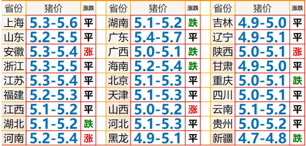2026.3.5今日猪价格表┃3.5全猪价今日涨跌表 养羊网 2026-03-05 2026.3.5今日猪价格表┃3.5全猪价今日涨跌表 养羊网 2026-03-05 上一篇:猪价 | 2026.3.5~最新猪价 下一篇:2026 年 3 月 5 日猪价、肉价信息 您可能还会对下面的文章感兴趣111: 相关文章 同发鸡蛋2026年2月27日价格 ?不上班搞钱idea分享 近期价格更新!!! 近期价格更新!!!