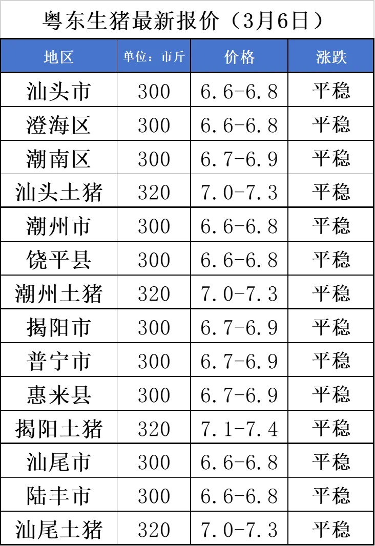 粤东生猪价格|3月6日最新猪价及未来三天预测