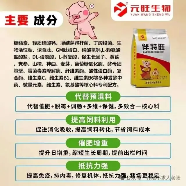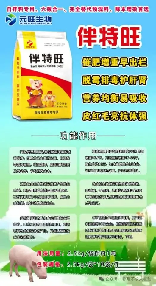 行情低迷期,降本才是王道!选伴特旺核心料,5斤能拌1000斤料,价格比浓缩料、预混料更低,营养还更全——脱霉剂、催肥促长成分、免疫多维全包含,不用额外添加,省心又省钱,养殖成本直接降低一大截,即便是猪价再低,咱们养殖户也是稳赚不赔的
