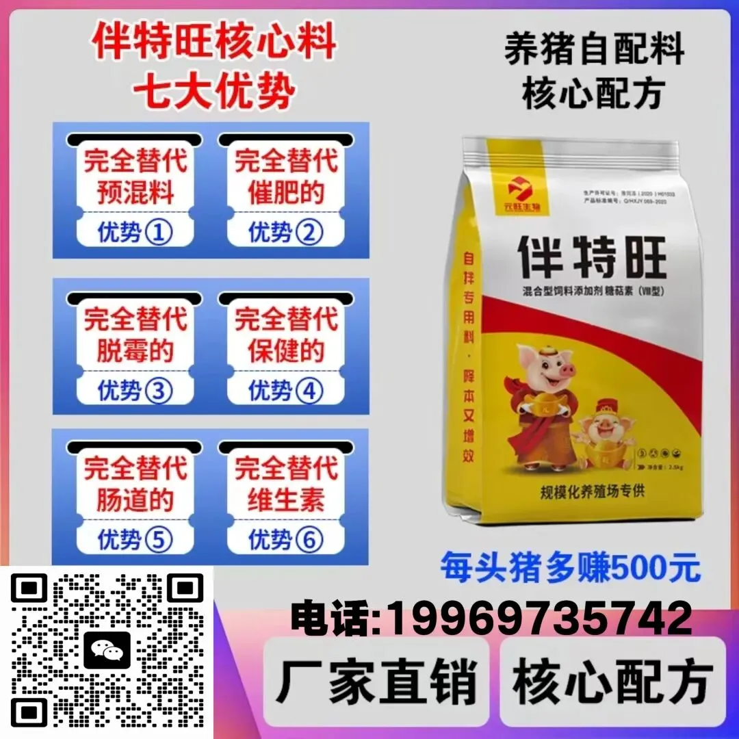 行情低迷,告别传统高价浓缩、预混料!选择核心料伴特旺。一包5斤能拌1000斤料!比浓缩,预混料价格更低!营养更全面!另外脱霉剂,催肥促长,增加免疫,多维都不用额外再添加!给咱做到既省心又省钱!