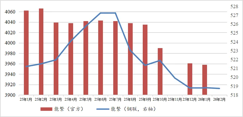 据官方数据,1月能繁3958万头,自2025年10月起持续小幅下降。关于2月的情况,官方数据还没出,钢联的数据是2月能繁-0.02%,基本上维持不变。