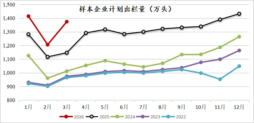 二、样本企业计划出栏量维持高位,一季度的出栏总量预计创新高