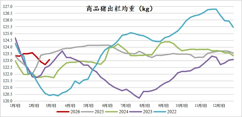 从出栏均重来看,春节期间的降重去库存并不显著,从高点123.57降至目前的123.06,降幅仅为-0.41%,显著低于历史同期,2024年和2025年同期的降幅均超过1%。