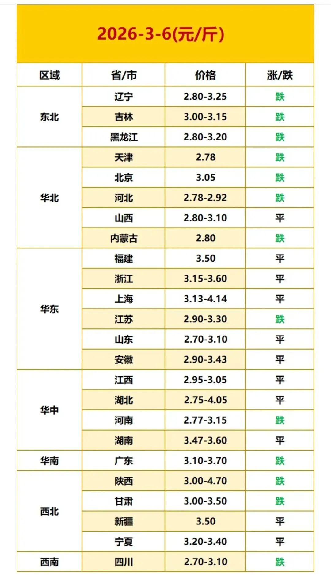 2026年3月6日全国鸡蛋价格最新走势 ? ? ? 全国鸡蛋最新价格参考: