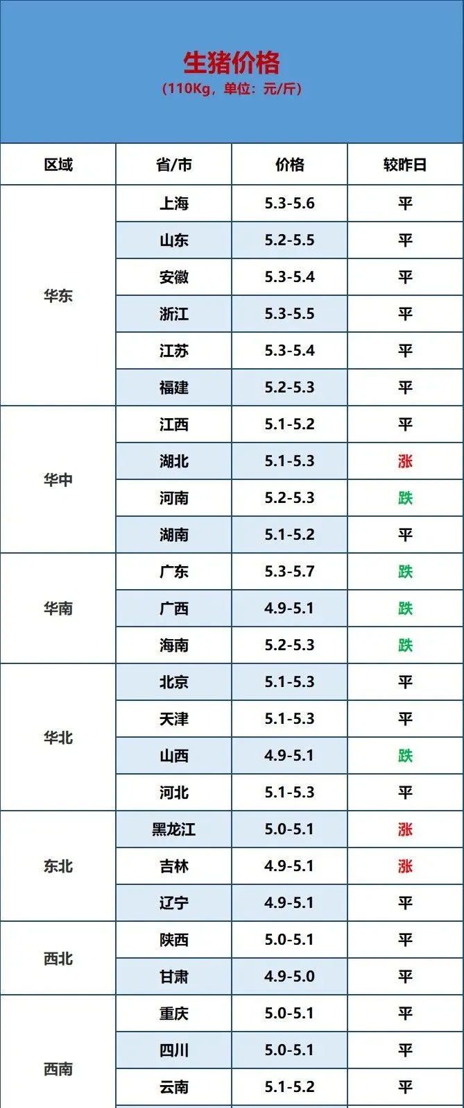 2026.3.6明日猪价!猪价日评:今天猪价偏弱震荡。中国主流市场出栏外三元、内三元及土杂商品大猪加权日均价较昨日价格稳中有涨,全国生猪出栏加权日均价10.49每公斤,较昨日价格上涨0.03%。当前供应端偏宽松,前期压栏大猪、规模场出栏增加叠加冻品库存偏高,市场供给充足;需求端处于节后淡季,消费偏弱、屠企持续压价收购,养殖端亏损扩大。预计近期仍低位震荡。