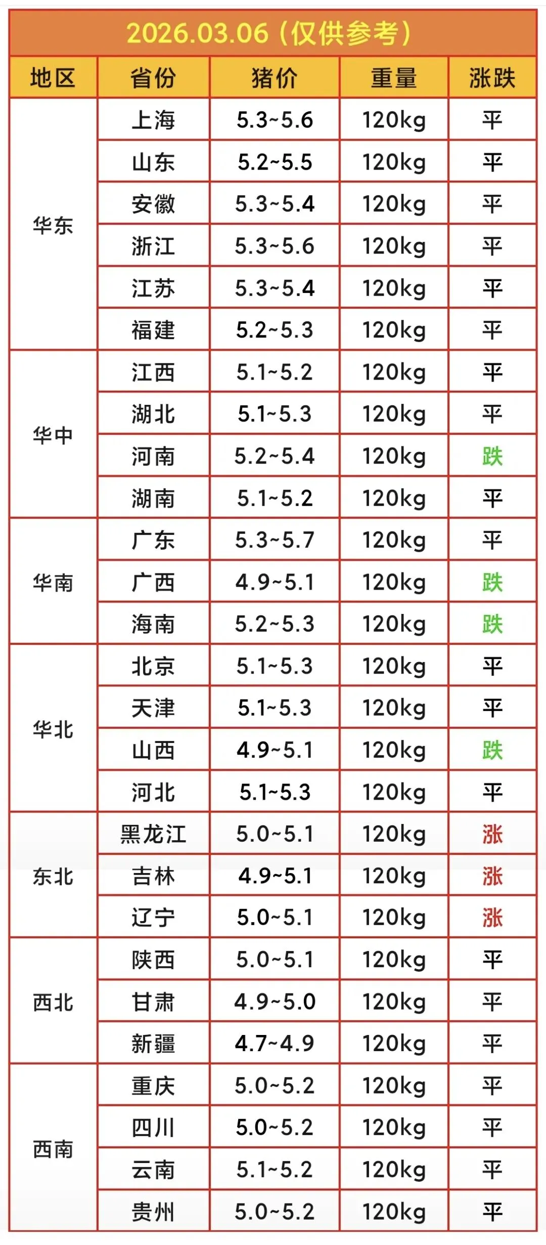 2026年3月6日全国猪价最新走势 养羊网 2026-03-05 2026年3月6日全国猪价最新走势 已关注 关注 重播 分享 赞 视频详情 ? ? ?? ? ? ?全国猪价最新价格参照:催肥界的王炸产品??【肉畜肽白金】-央视上榜品牌国家专利超分子“胶束中药”成分,育肥猪健康增重催肥,节约成本,真正帮咱们养殖户创富增收??? 已关注 关注 重播 分享 赞 视频详情 已关注 关注 重播 分享 赞 视频详情 已关注 关注 重播 分享 赞 视频详情 养羊网 2026-03-05 上一篇:3月5日猪价|上涨啦! 下一篇:明日猪价——2026年03月06全国生猪价格! 您可能还会对下面的文章感兴趣111: 相关文章 一张图了解三大猪企 近期价格更新!!! 重要的是能繁母猪存栏数 美国鸡蛋价格又创历史新高了(“史”)