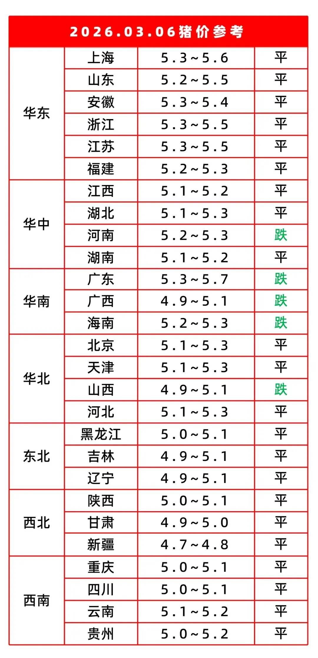 3月6日猪价参考