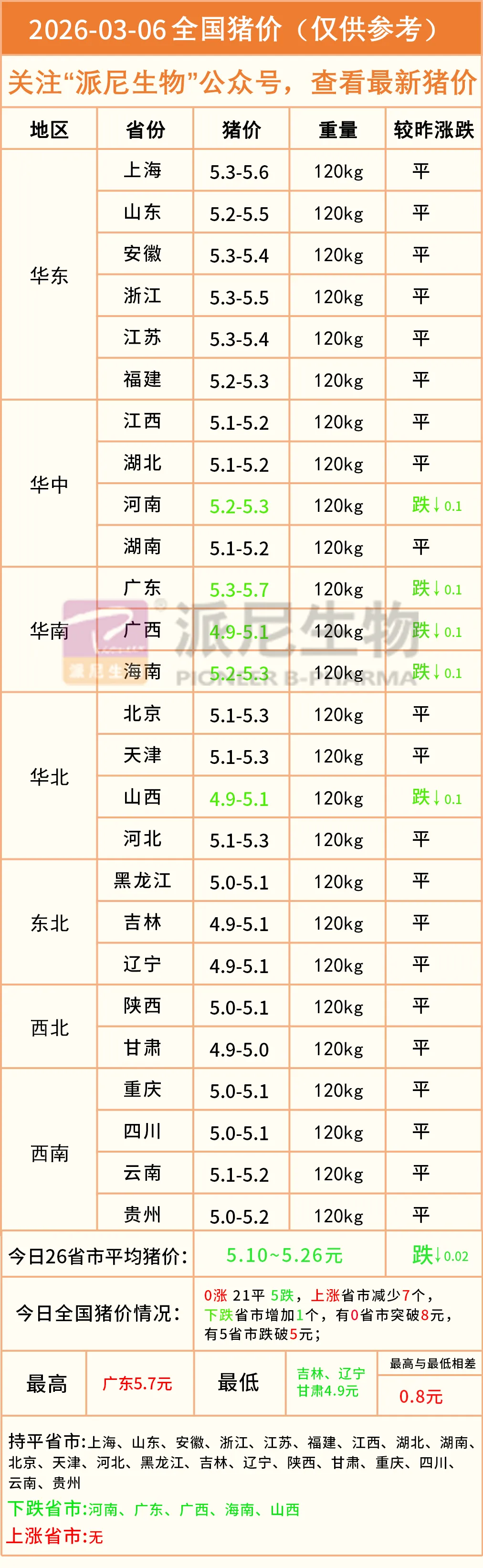 明日猪价——2026年03月06日全国生猪价格! 养羊网 2026-03-05 明日猪价——2026年03月06日全国生猪价格! 养羊网 2026-03-05 上一篇:2026年3月5日馆陶金凤市场鸡蛋价格 下一篇:跌!3月5日鸡蛋价格最新报价行情参考 您可能还会对下面的文章感兴趣111: 相关文章 近期价格更新!!! 川菜图鉴? #荣川菜 2026.2.5今日鸡蛋价格 2026年1月28日全国鸡蛋价格