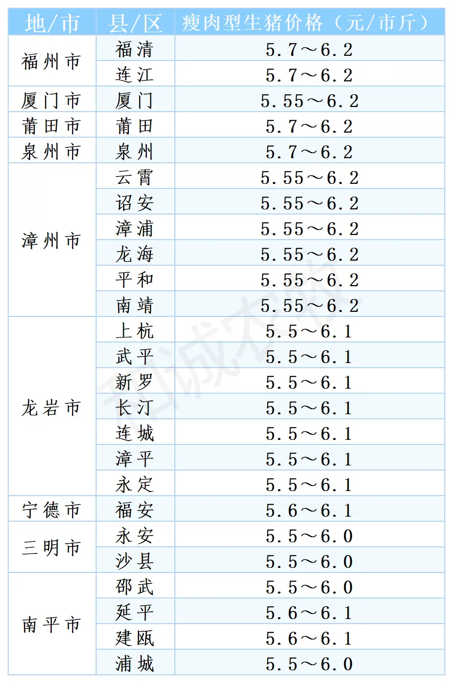 【猪价】2026.03.06福建各地区每日最新猪价点击上方"蓝字" 关注我们吧! 温馨提示 红色数字表示与昨日相比增长 2026.03.06 转载请注明出处!