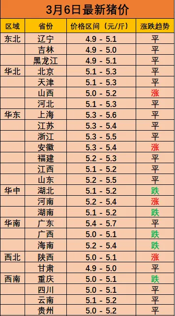 3月6日最新猪价!涨跌互现,稳中偏强!!!