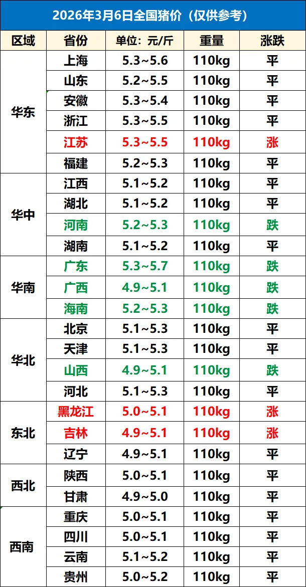 3月6日全国猪价一夜降温,下跌“猛抬头”! 养羊网 2026-03-06 3月6日全国猪价一夜降温,下跌“猛抬头”! 养羊网 2026-03-06 上一篇:2026年03月06日-今日最新猪价行情 下一篇:2026.3.6猪价快讯--福州穗丰动保 您可能还会对下面的文章感兴趣111: 相关文章 2025年4月13日全国各地生猪价格信息 我踩遍了美帝鸡蛋的雷,所以你不用再 2025年4月13日全国各地生猪价格信息 2025年4月13日全国各地生猪价格信息