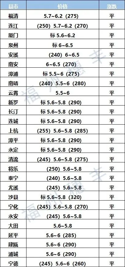 福建省生猪价格