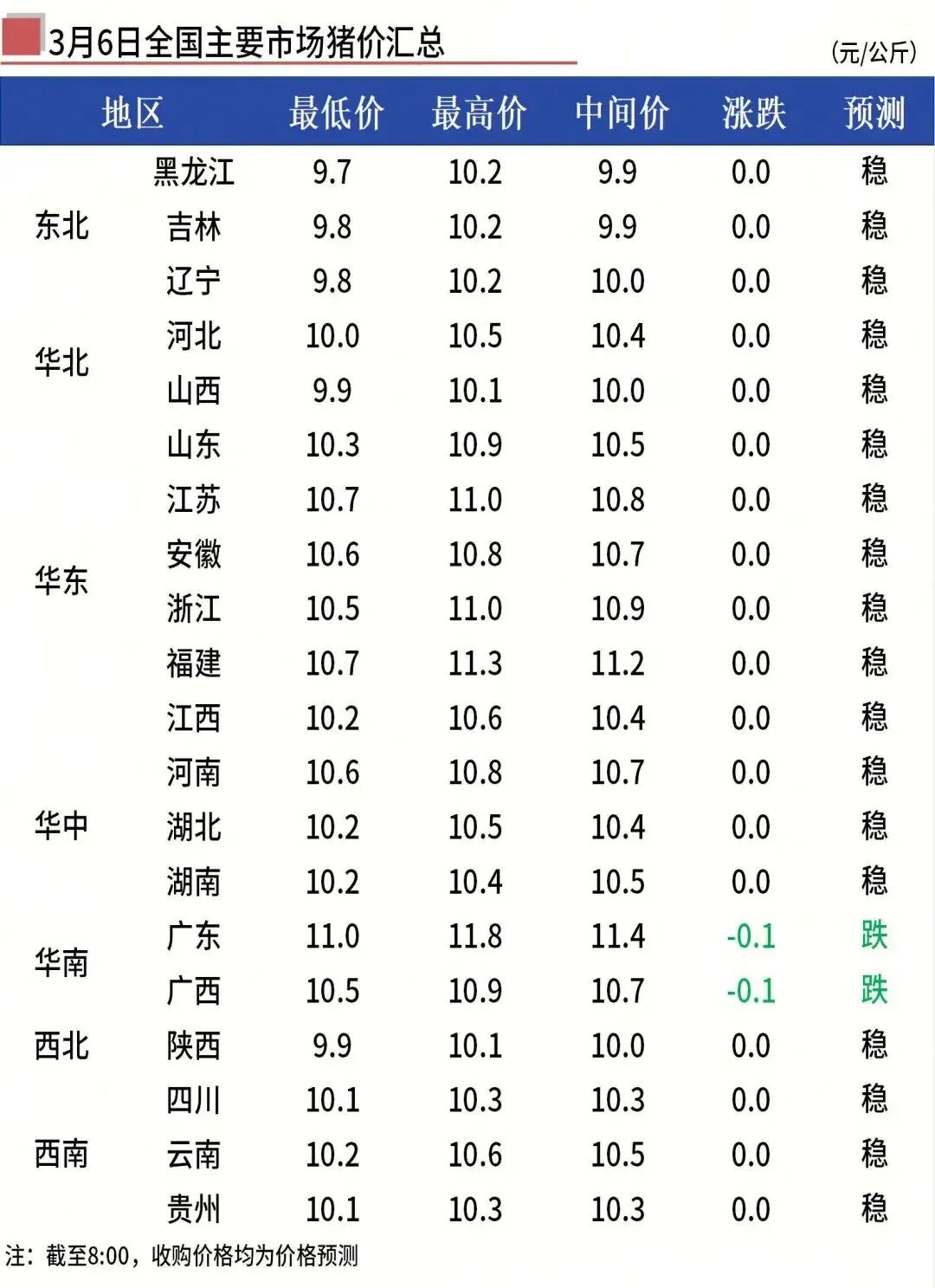 3月6日全国早间猪价【稳定为主】