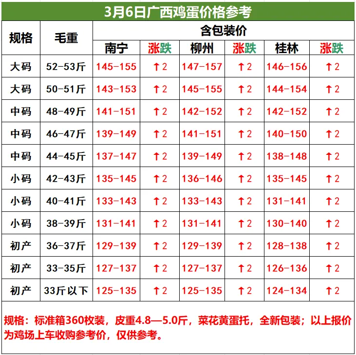 3月6日桂林、柳州、南宁鸡蛋价格参考,涨