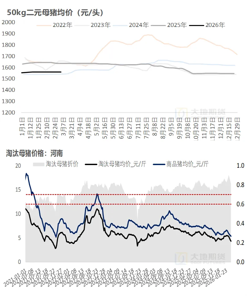 养殖成本:截至3月5日,自繁自养成本12.14元/公斤(+0.00);外购仔猪成本10.65元/公斤(+0.01)。