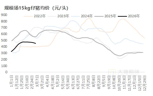 短期仔猪补栏观望为主,价格小弱;后续进入季节性补栏集中窗口期预计还有一定上调空间。据涌益样本监测,截至3月5日,当周6.5kg仔猪市场均价347元/头,较前周-12元/头;15kg仔猪市场均价448元/头,较前周-15元/头。