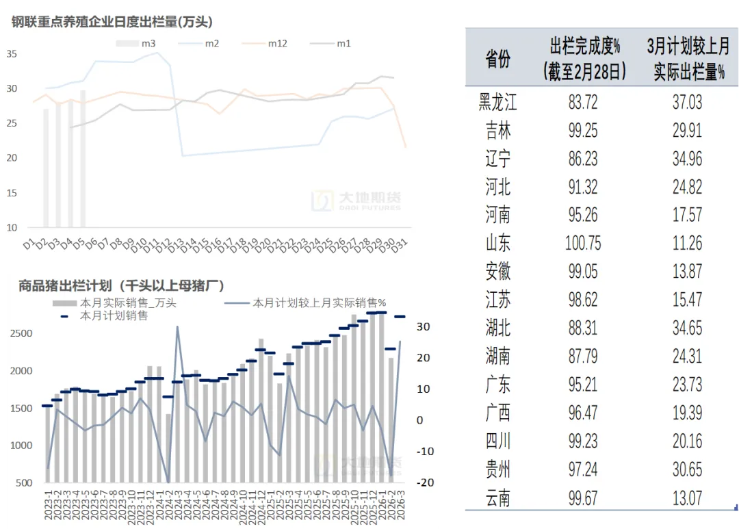 企业出栏计划增幅明显,月内商品猪供给压力仍存。2月由于存在春节假期,出栏节奏阶段基本停滞,加之前期节奏一般,整体并未完成计划量,存在后延出栏情况;本身3月按照生产轮转计划也有增量,综合来看出栏压力不小。