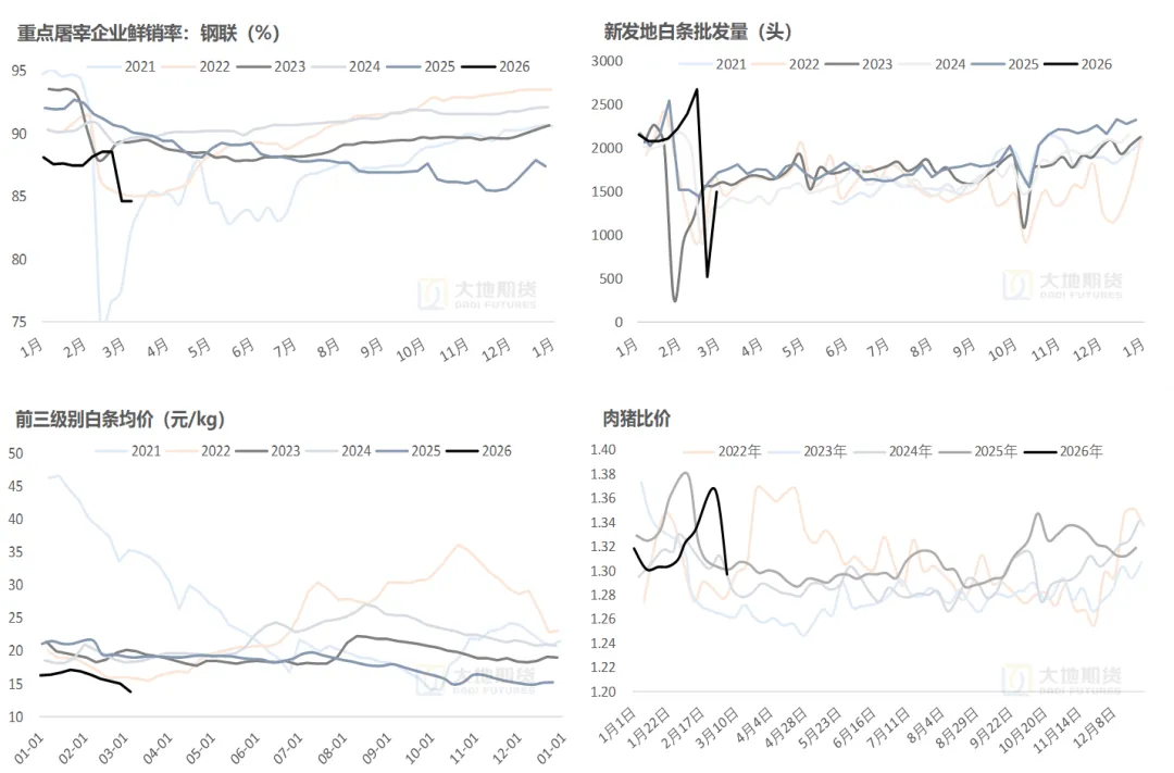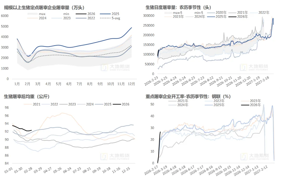 元宵节后整体消费回归正常水平,但近两个月是传统淡季,猪肉需求跟进力度不足,下游市场购销相对冷清。屠宰场存在亏损状态下按需采购为主,开工率低位窄调。
