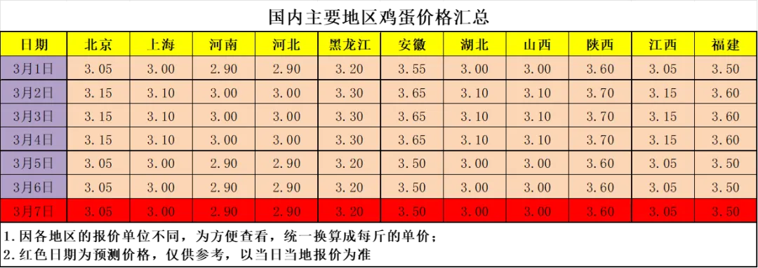 ? ? 鸡蛋预测价格仅供参考,实际价格以当地当日的报价为准。
