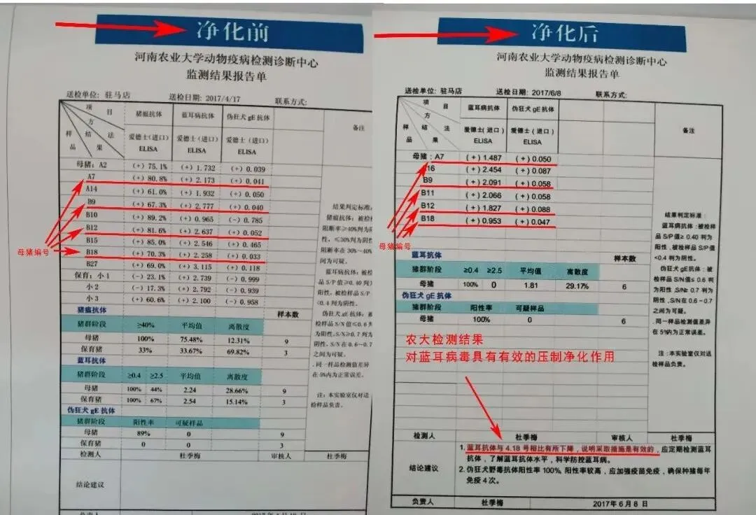 蓝耳爆发前后对比数值(实用蓝圆卫士净化前——后)