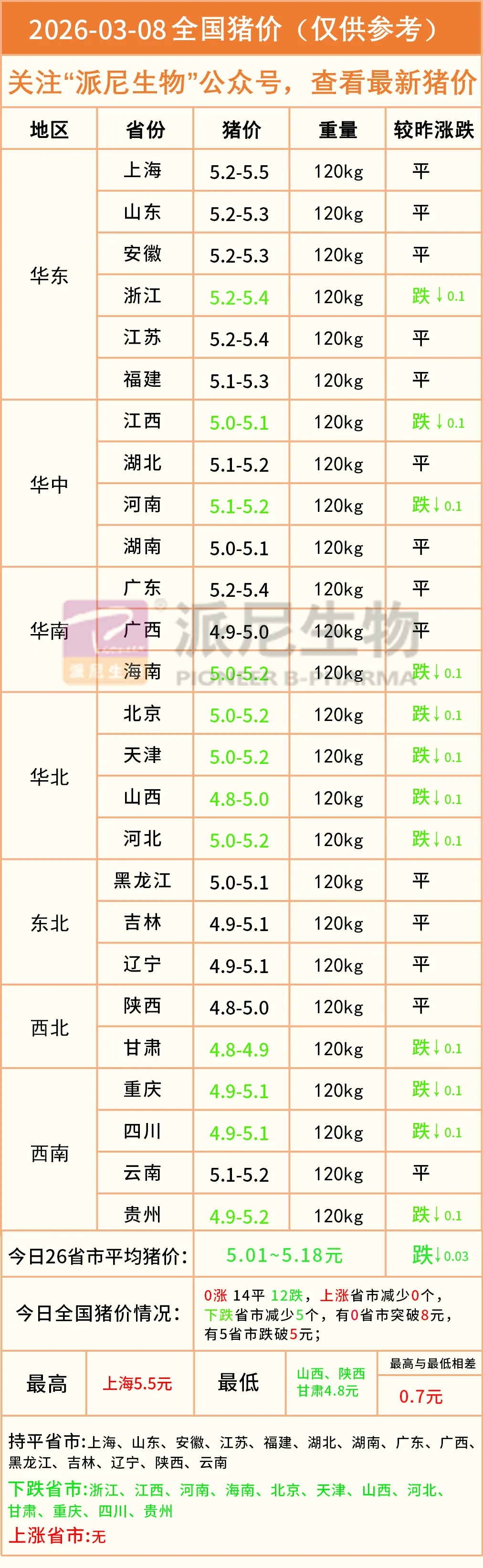 明日猪价——2026年03月08日全国生猪价格! 养羊网 2026-03-07 明日猪价——2026年03月08日全国生猪价格! 养羊网 2026-03-07 上一篇:明日猪价——2026年03月08全国生猪价格! 下一篇:2026.3.8 猪价 您可能还会对下面的文章感兴趣111: 相关文章 2025年4月13日全国各地生猪价格信息 近期价格更新!!! 养羊技术大全视频教程山羊绵羊饲养 变草为宝:河南鲁山李五成加工艾草前看好效益高