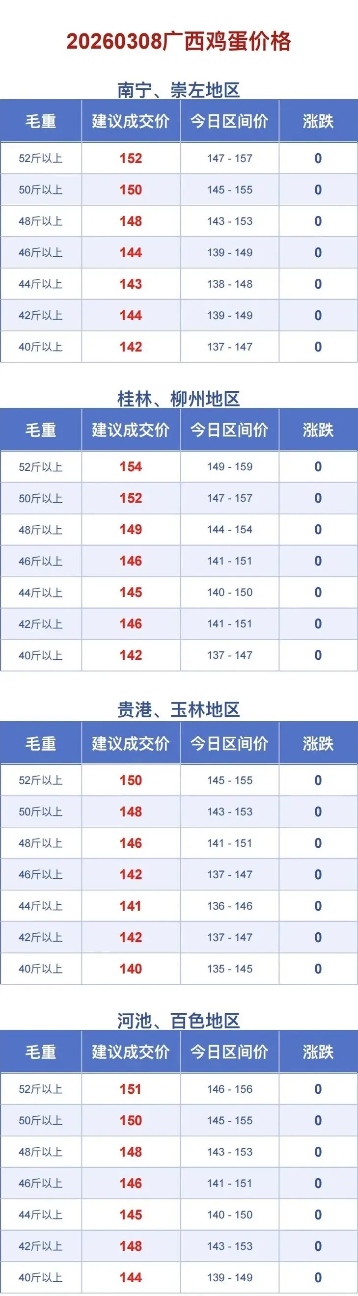 说明:广西鸡蛋价格发布,是为深入落实农业农村部《“百场(厂)千村万户”畜禽生产和效益定点监测信息采集》工作要求的基础上,健全广西蛋禽产业数据监测体系,提供实时精准的鸡蛋价格锚点,推动行业形成透明规范、公允合理的价格体系,助力我区蛋禽产业高质量发展。