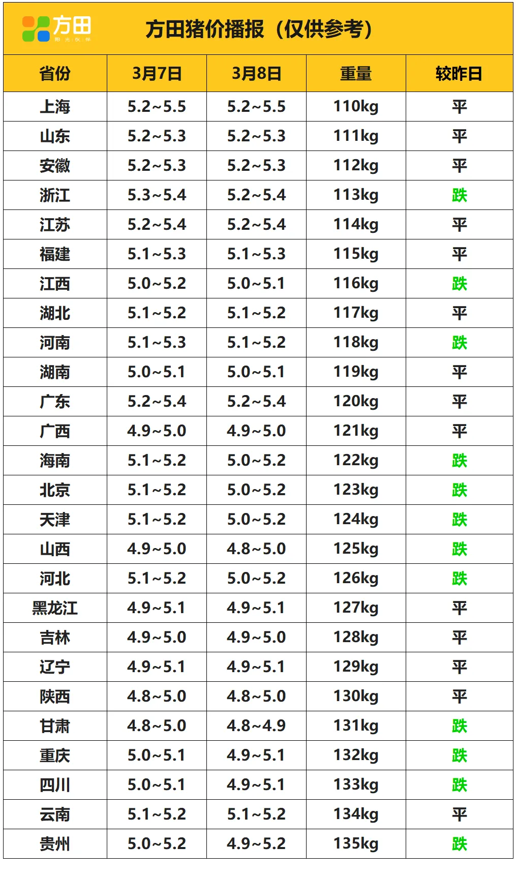 猪价丨3月8日 明日猪价早知道 养羊网 2026-03-08 猪价丨3月8日 明日猪价早知道 养羊网 2026-03-08 上一篇:大众报价:2026.03.08全国猪价 下一篇:2026年3月8日全国鸡蛋价格汇总(参考) 您可能还会对下面的文章感兴趣111: 相关文章 猪价早知道 2026/1/31 2026.1.20-明日猪价( 涨涨涨!千万别停!多地猪价继续上涨!!) 2025年4月13日全国各地生猪价格信息 2026.2.6-明日猪价(部分地区再次上涨!)